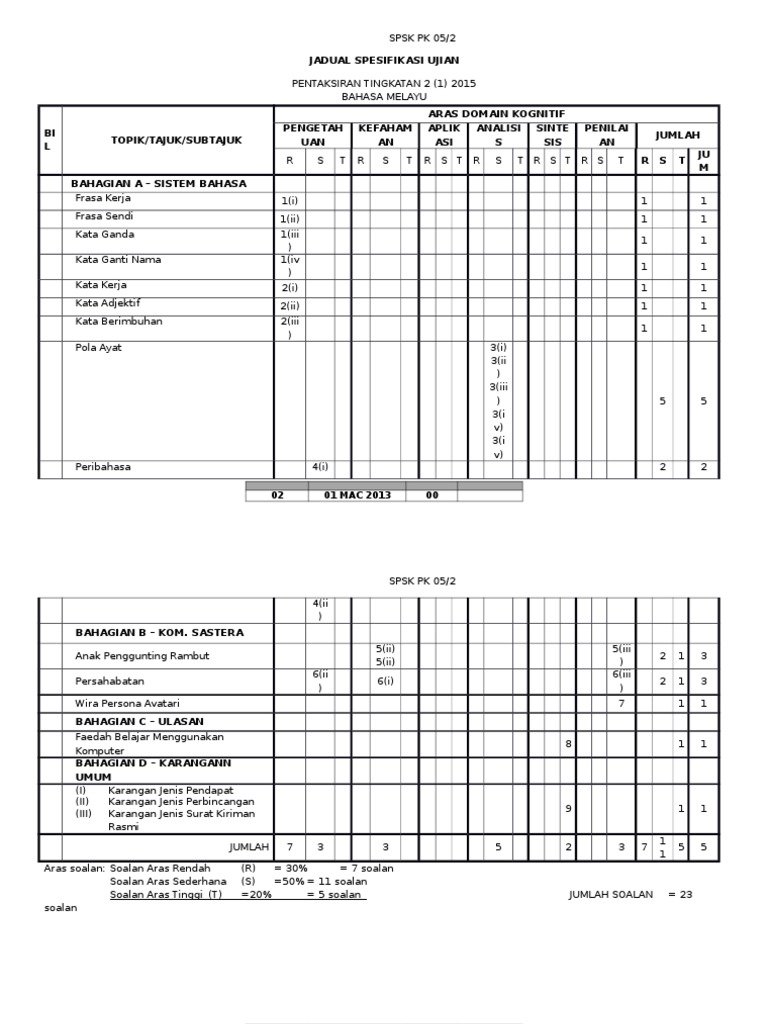 SPSK PK 052 JADUAL SPESIFIKASI UJIAN Digunakan oleh penggubal soalan PEPERIKSAAN. Up to 24 cash back TINGKATAN 2 MATEMATIK BAB TAJUK MUKA SURAT 1. Taburan tajuk adalah seimbang dan pelajar diuji pada keseluruhan kurikulum.
